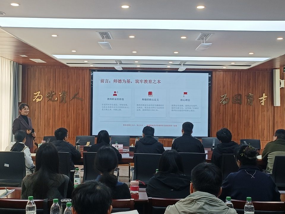 开班仪式结束后,第一专题培训随即展开。干红芳教授为新教师作《守师德初心 担育人使命》师德师风专题讲座,结合教育家精神和正反案例,引导新教师守初心、担使命,筑牢思想根基。随后,通识教育学院周朝太老师组织破冰团建与团队凝聚活动,通过趣味拓展和团队协作游戏,帮助新教师打破陌生感,增进彼此了解与信任,增强团队凝聚力。最后,党政办公室李浩科长带领新教师参观校史馆,系统了解学校发展历程、办学成就与文化积淀,增强新教师对学校的认同感与归属感。