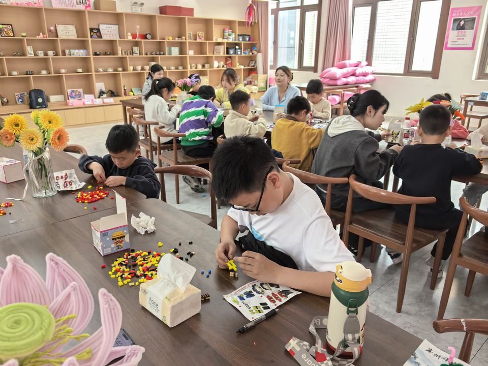 最让孩子们着迷的,要数4月2日下午的五子棋游戏活动。这可不是随便下下棋——学生志愿者们把棋盘变成了“战场”,教孩子们认识棋子的“排兵布阵”。5岁的浩浩第一次赢了棋,兴奋得跳了起来:“我打败了大哥哥!”输了的小朋友则在志愿者的引导下学会了说“再来一局”。而在旁边的乐高区,孩子们同样玩得热火朝天,用五彩积木拼搭出各种奇妙的造型。“我们设计这个环节的初衷,就是让孩子们在游戏中学会规则、学会输赢、学会坚持。”负责五子棋环节的学生志愿者小杨说,看着孩子们从争抢棋子到主动说“该你了”,那种成长肉眼可见。