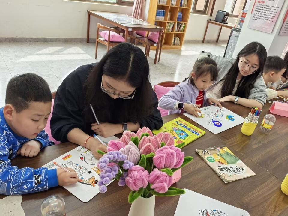“我和爱人都要工作,春假三天孩子没人带,往年要么轮流请假,要么把孩子带到办公室‘圈养’。孩子在旁边待不住,我也静不下心来上班。”学校的唐老师说起过去的窘境,连连摇头。但今年不一样了——4月1日一早,她把5岁的儿子送到图书馆巾帼驿站时,孩子头也不回地冲了进去,因为前一天晚上,志愿者姐姐已经在群里发过教室的照片:整洁的桌椅、摆满绘本的小书架、还有一筐筐五颜六色的黏土。“他跟我说,妈妈,我要去上‘眉职幼儿园’。”