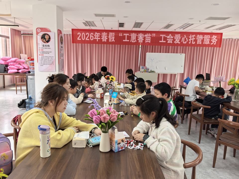 这一幕,是学校2026年春假“工惠春苗”工会爱心托管服务第一天的寻常瞬间。但正是这些寻常瞬间里流淌的温情,让30余个教职工家庭在这个乍暖还寒的四月,感受到了来自学校“娘家人”的滚烫心意。
