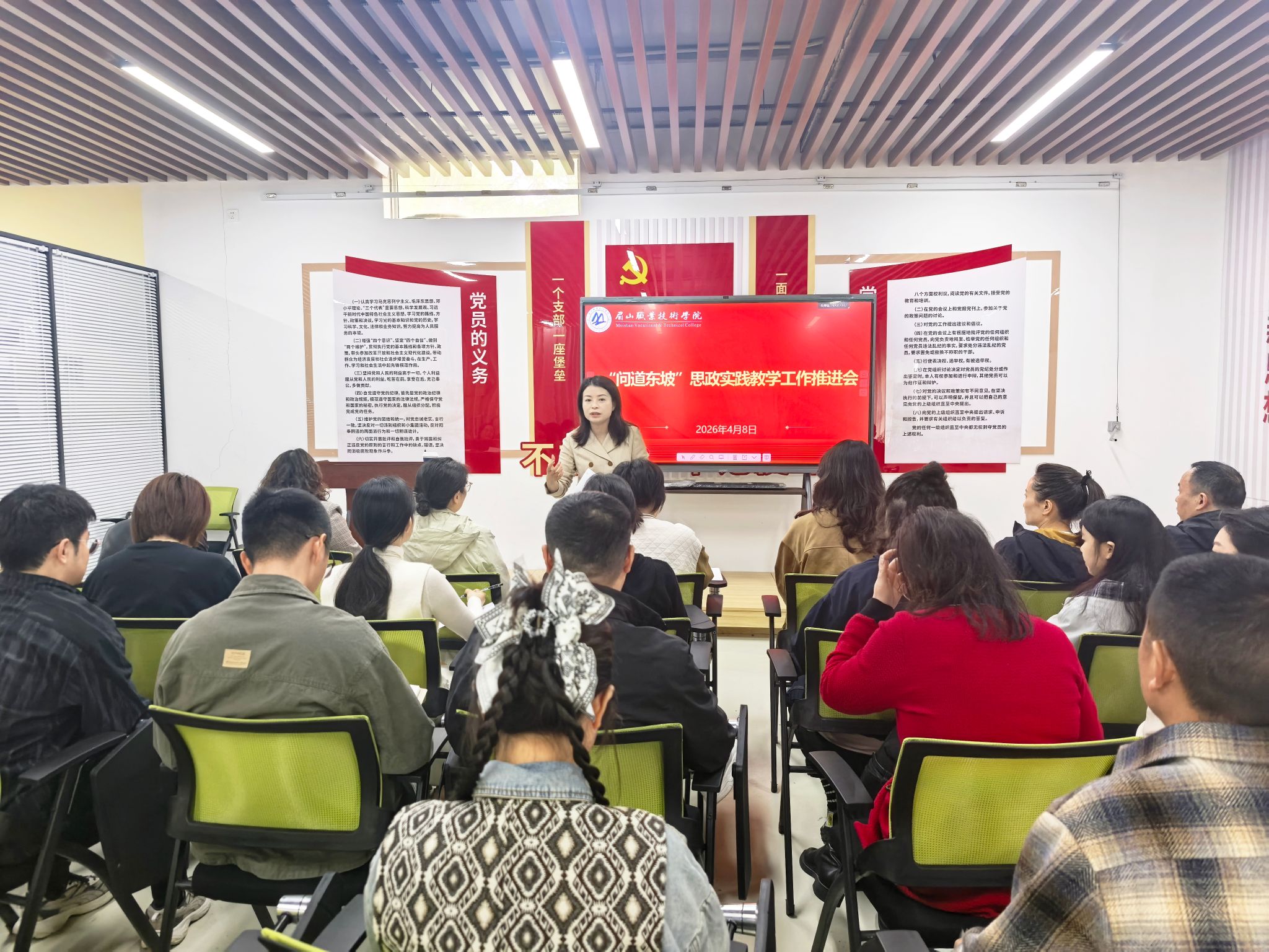 学校教务处副处长杨红兵、各二级学院教学秘书、学工秘书、辅导员、后勤资产处及思政教师代表到场参会。