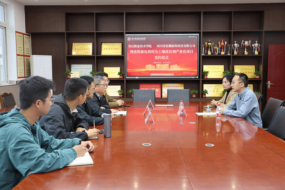 4月14日,天府新能源新材料产业学院与四川省星耀新程科技有限公司《锂渣资源化为土壤改良剂产业化项目》签约仪式在第一教学楼1207会议室举行。四川省星耀新程科技有限公司董事长曾为珂、天府新能源新材料产业学院院长王素君及岳智慧博士科研团队出席签约仪式。