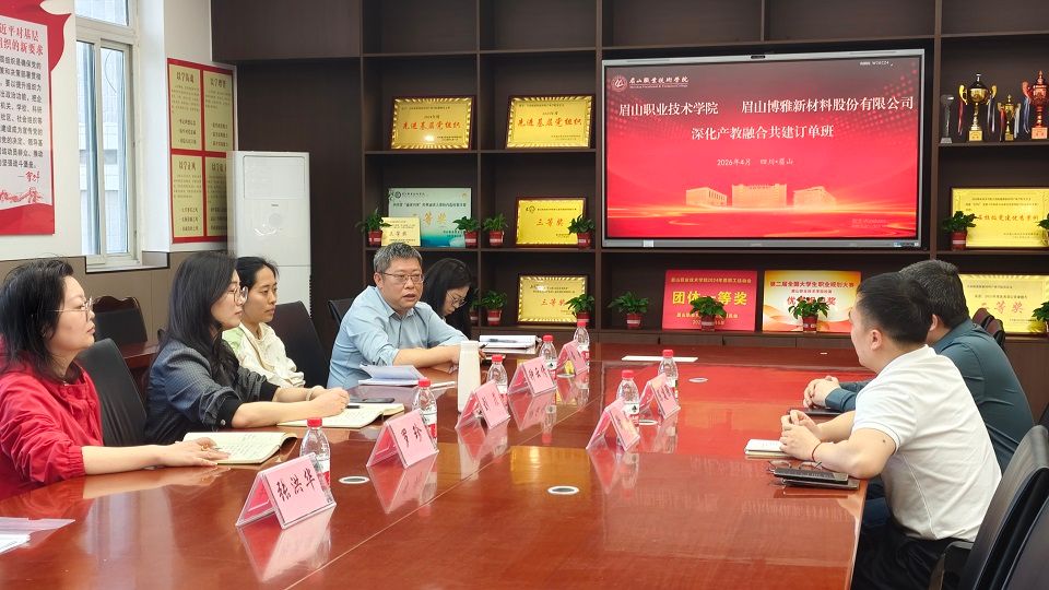 座谈会上,刘菲对眉山博雅新材料股份有限公司一行的到访表示欢迎,并详细介绍了产业学院的基本情况、专业设置、人才培养模式及近年来在产教融合方面取得的成果。她表示,学院始终坚持以服务地方产业发展为导向,积极对接企业需求,希望通过“订单班”模式,实现人才培养与企业用人的精准对接,为区域新材料产业输送更多高技能人才。
