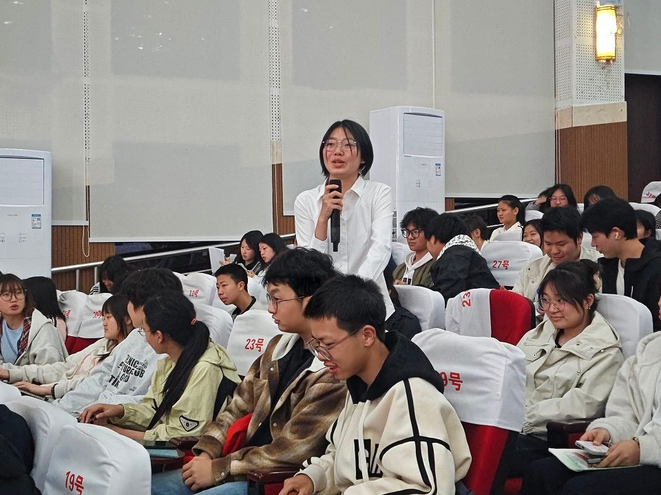 在互动环节,学生围绕讲座内容与东坡文化展开热烈讨论。有人就“苏轼在杭州的政绩”提问,将家风传承延伸至其社会贡献;还有人探讨“苏轼最值得当代青年人学习的品质”,认为其面对挫折时的坚韧与对生活的热爱是新时代青年应当珍视的精神品格。现场气氛活跃,掌声不断。