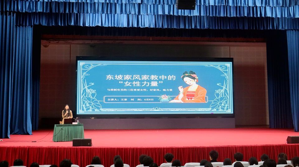 4月20日,由学校团委、妇联与马克思主义学院联合主办的“东坡文化论坛”系列讲座第二讲在艺术中心举行。本次讲座邀请马克思主义学院教师王景担任主讲,以《东坡家风家教中的女性力量》为题,为全校青年学生代表作专题宣讲。