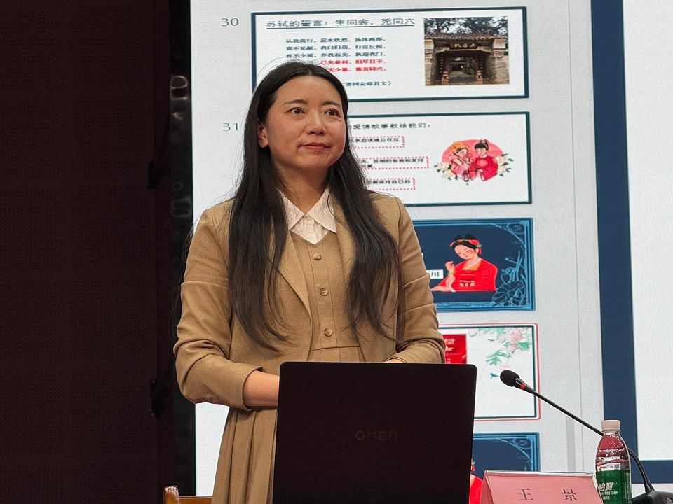 讲座中,王景以苏轼的成长历程为主线,重点剖析了程夫人在“三苏”成才过程中的关键作用。通过“不发宿藏”的典故,王景生动讲述了程夫人以“君子爱财,取之有道”的义利观教导苏轼兄弟,为其筑牢清廉正直的品格基石;结合“不残鸟雀”的故事,深刻阐释了程夫人“仁爱万物”的教育理念,揭示了这一理念如何塑造了苏轼温厚冲淡的心灵世界。王景指出,程夫人“读书正业、家行仁孝”的家风传承,不仅成就了“一门三父子”的文坛佳话,更充分彰显了女性在家庭教育中“以德立身、以文化人”的独特力量,是中华优秀传统家教文化中不可忽视的宝贵财富。