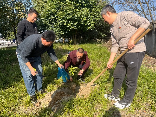 活动中,党员们热情饱满,干劲十足,有的负责挖坑、有的负责扶苗、有的负责浇水、有的负责铲土,大家同心协力将—棵棵树苗扎根泥土,用实际行动为大地增添了一片绿色。