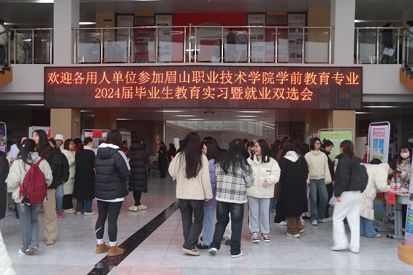 1月5日,师范教育系在学校第四教学楼一、二楼平台举办2024届学前教育专业学生实习暨就业双选会。本次双选会邀请用人单位60余家,提供岗位600余个。