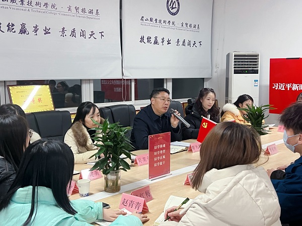 12月20日,商贸旅游系在第二教学楼2212会议室召开学生座谈会,学校党委委员、副校长陈光辉出席座谈会,商贸旅游系党总支副书记袁娇主持会议。