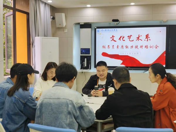 10月26日,文化艺术系邀请第八届四川省高校辅导员素质能力大赛一等奖获得者、四川师范大学辅导员张绍希在学校第七教学楼7508教室为全体学工管理人员作专题培训,培训由党总支副书记廖颖主持。