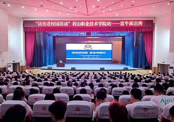 9月18日至21日,学校学生工作部邀请东坡区公安分局富牛派出所民警到校,在艺术中心为2023级全体新生开展了连续四天的法律进校园专题讲座。