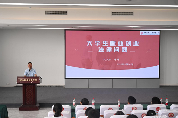 刘菲强调,高校毕业生作为社会中非常重要且庞大的群体,一直以来受到社会各界的高度关注和关心,同学们除了努力提升个人专业技术技能、提高个人就业创业能力,还应该具备一定的就业法律知识,才能为个人顺利就业保驾护航。