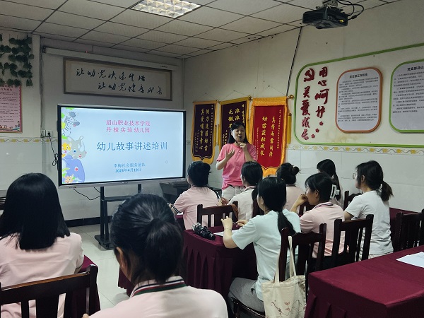 4月19日,师范教育系学前教育教研室赴丹棱实验幼儿园开展“一师一园”社会服务,为幼儿教师进行幼儿故事讲述培训。