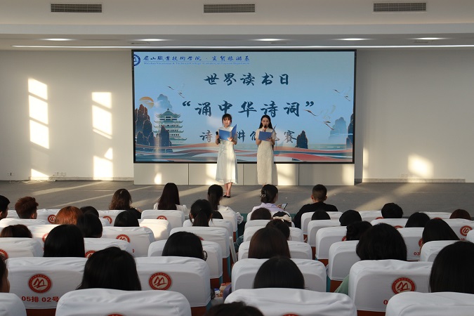 4月25日,商贸旅游系在学校招生就业中心二楼多功能厅举行“诵中华诗词”诗词讲解比赛决赛。