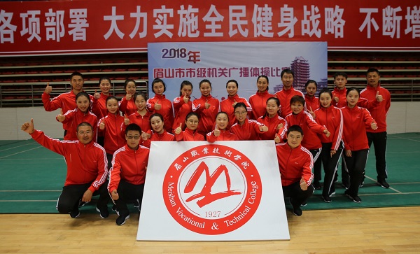 11月21日,由眉山市直机关工委、眉山市教育体育局联合举办的2018年市级机关广播体操比赛在市体育馆举行,全市市级机关57个部门(单位)组成的22个代表队共计500余人参加比赛,我校教职工队参加比赛,并荣获三等奖。 本次比赛充分展现了我校教职工团结协作、积极向上、锐意进取的精神风貌。