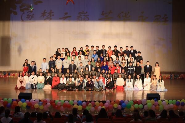 系主任刘桦为晚会致辞。晚会在激情四射的开场舞《肆舞青春》中拉开了帷幕,本次晚会形式多样、精彩纷呈,小品《人鬼情未了》、相声《对对联》以及《配音秀》别出心裁的编排,恰到好处的演绎,诙谐幽默,令全场欢笑声不断,气氛高潮迭起;舞蹈《芳华》《燃烧我的卡路里》展示了别样的青春活力,在场的每一位观众无不深受感染;《汉服秀》完美的将汉代的服饰、礼仪和文化有机结合、完美的演绎了出来,让观众们仿佛一瞬间穿越到汉代,感受到华夏传统文化的无穷魅力;情景剧《总会有人爱着你》暖心感人,平凡的小温暖是来自陌生人的善意,呼唤人性的真善美,启发观众社会和谐需要人人参与,共同维护,让整个会场增添了别样的一番温暖;由张民、付进平、赵兵、李晓航、李瑞丰、姚缙轩六位教师现场演绎汉语教研室主任张民为学生创作的诗歌《青春的力量》,赢得了同学们的阵阵欢呼,将晚会推向了高潮。迎新晚会伴随着《另一个天堂》优美歌声中落下帷幕。