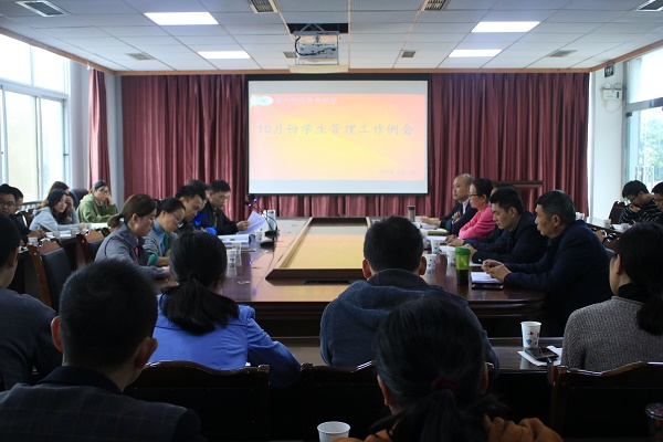 10月8日,学校学生处在行政楼一楼会议室召开十月份学生管理工作例会。党委委员、副院长胡洪安出席会议,学生处处长黎维红主持会议。