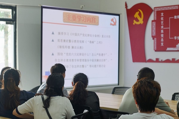 全体党员观看了省纪委廉政视频《“毒蜂”之咬》和学校廉政公益片《锤炼师德 廉洁从教》,围绕典型的反面事例进行了讨论。