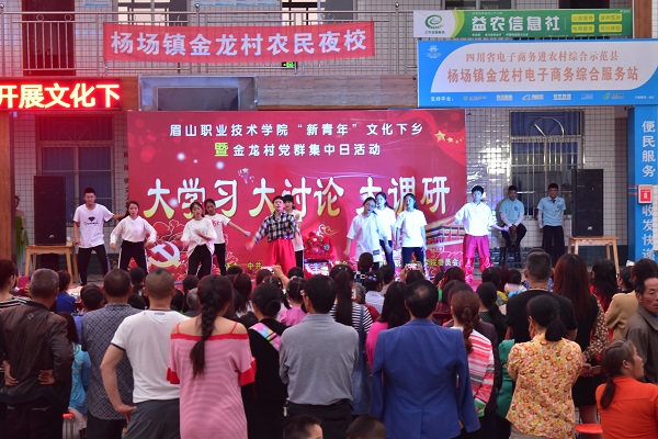 为深入贯彻落实省委、省委教育工委、省教育厅和市委关于开展“大学习、大讨论、大调研”活动文件要求,4月28日下午,学校在大学生“青马工程”实践基地(丹棱县)开展了“大学习、大讨论、大调研”系列活动。学生处处长黎维红、校团委副书记袁娇以及丹棱县杨场镇纪委书记魏勇、副镇长廖莉等领导莅临活动现场,我校尼泊尔农林大学的研修生、大学生艺术团的师生代表60余人与400余名当地群众一同参与了本次系列活动。