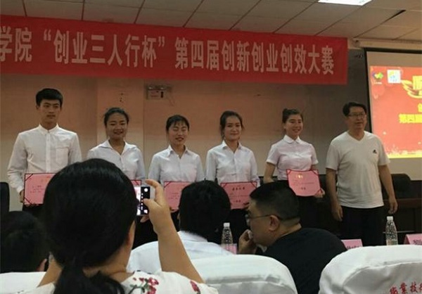 4月18日下午,由学校学生处、团委主办的“创业三人行杯”第四届创新创业创效大赛决赛在学术报告厅举行。由中职部办公室主任张克昂老师指导的“小蜜蜂餐饮食材供应管理链垂直电商平台”项目获大赛第一名。