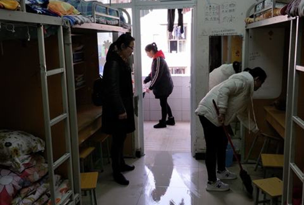 期末即将来临,为做好学生宿舍安全与卫生工作,规范住宿行为,消除安全隐患,创建整洁文明的学习和生活环境,12月26日下午,中职部党总支副书记陈菊仙带领全体辅导员深入学生寝室,进行安全、卫生大检查。