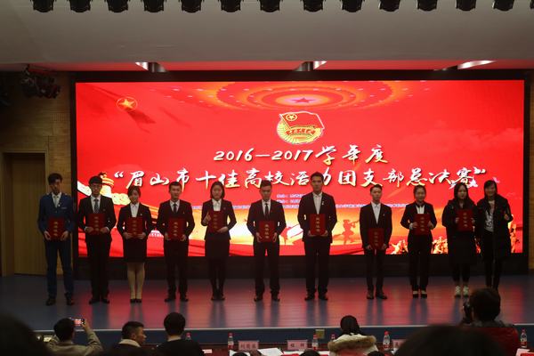 1月5日下午,由共青团眉山市委主办的2016-2017学年度“眉山市十佳高校活力团支部”评选总决赛在四川城市职业学院学术报告厅拉开帷幕,团市委书记梁宁出席比赛现场并发表讲话,青年部部长李珂、学少部部长程辉、志工部负责人易珂琳担任大赛评委。