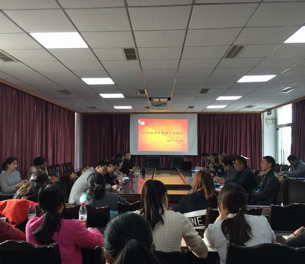 11月2日下午,学院在行政楼一楼会议室召开11月学生管理工作例会。党委委员、副院长胡洪安,学生处处长黎维红,团委副书记袁娇,学生处全体人员及各教学单位全体学生管理人员参加会议。会议由黎维红主持。
