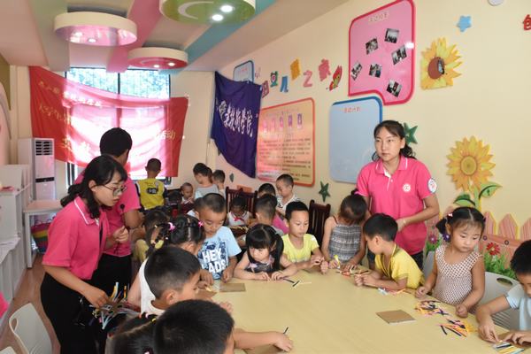 在蔡山妇女儿童之家,有这么一群孩子,他们用世间最纯真美丽的笑容,欢迎着眉职院的哥哥姐姐们的到来。“三下乡”志愿者为孩子们准备了舒心的音乐课堂、活力十足的舞蹈教学、异彩纷呈的趣味美术。随着悠扬的旋律,踏着动感的节拍,只为用爱筑起孩子们美好多彩的梦想!