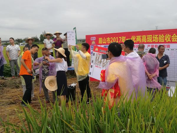 8月31日上午,天空下着毛毛细雨,却难以阻挡人们的热情,一大早便纷纷来到岷江现代农业园区“吨粮田”试种点,参加由眉山职业技术学院、眉山市农业局、岷江现代农业园区等单位共同推动的水稻“两高一优”项目攻关试验的验收。