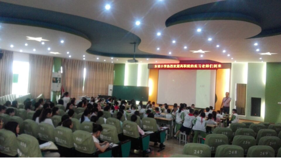 5月2日上午8:00,15级小学教育专业6至9班的同学在小学教育专业曾华老师的带领下,走入东坡小学的教室和课堂,去探寻小教专业的实践和理念,他们先观摩了小学三年级语文《太阳》的公开课,听取了小学语文老师们的交流总结,同学们也踊跃发言,提出他们心中的疑问,许多同学感受深刻,理解了小学语文教学中的一些技巧和方法。
