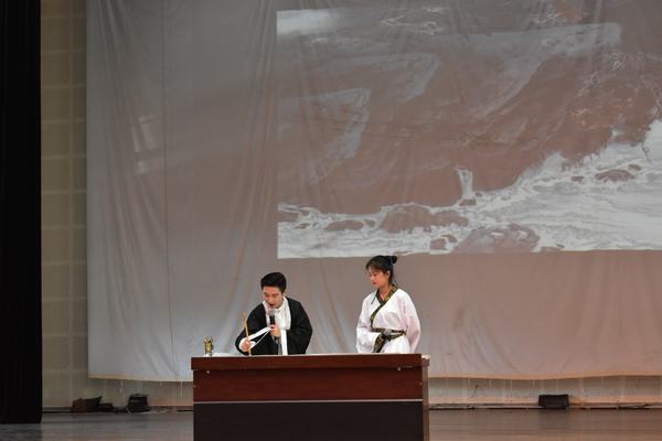 诵三苏经典,做有德之人。4月13日,学院文化艺术系第二届“东坡文化”诗文朗诵比赛在艺术中心成功举办。系党总支副书记彭艳、东坡文化与汉语教研室教师李晓航、罗茜、学生管理工作的全体老师担任了比赛的评委。两位荷兰交换生也应邀观看了表演。