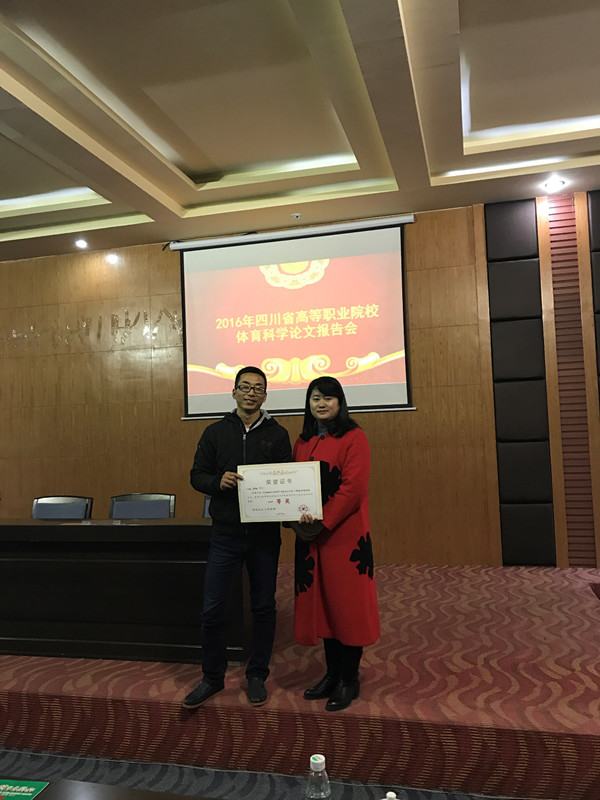 同时,黄艳、于海平老师还被四川省教育厅授予2016年四川高等职业院校“体育工作先进个人”荣誉称号。
