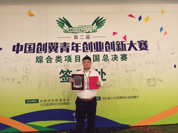 9月5日至8日,由人社部和中国宋庆龄基金会联合主办,河北省人社厅承办的第二届“中国创翼”青年创业创新大赛综合类半决赛、决赛在石家庄举办。我院农业技术系畜牧兽医专业2015级学生罗大堡带领的团队项目《大堡小鹌鹑“公益扶贫”富硒蛋》获得了全国大赛团队组“银翼奖”(全国二等奖)。