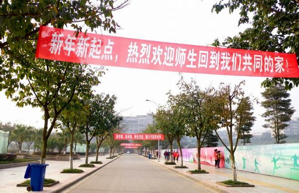 (景观大道上欢迎同学返校的标语)