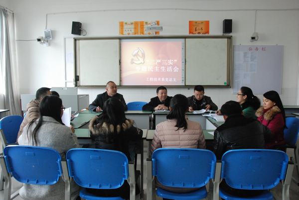 2015年1月7日下午,工程技术系党总支召开“三严三实”专题民主生活会,紧密联系班子和个人实际深入查摆问题,严肃开展批评和自我批评。会议由系党总支副书记(主持工作)杜宗洪同志主持,工程技术系全体党员参加会议,学院党委委员、纪委书记张献华专程到会指导。