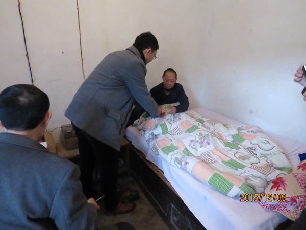2015年12月9日上午,商贸旅游系党总支副书记(主持工作)杨光辉与曾庙村党支部第一书记贺仲华、曾庙村党支部书记孙克能、曾庙村村主任曾帮勤、曾庙村文书周文德,到曾庙村1组村民罗润全家送上了小猪崽和慰问金。