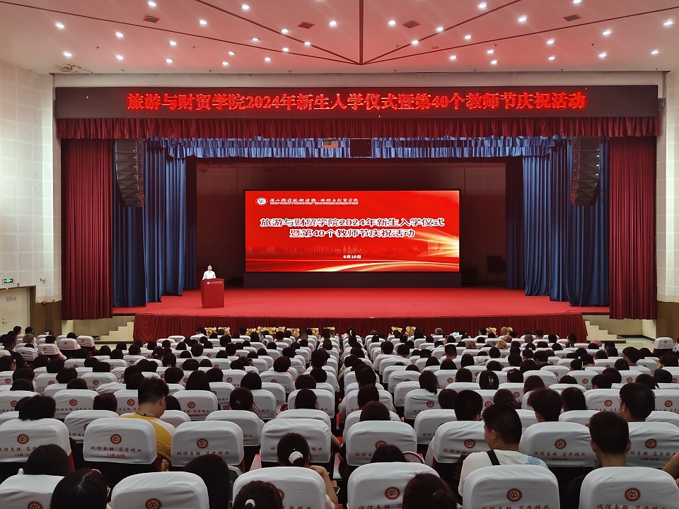 9月10日,旅游与财贸学院2024年新生入学仪式暨第40个教师节庆祝活动在学校艺术中心举行。学院院长廖明江、党总支副书记袁娇、全院教职员工以及全体新生参加活动。