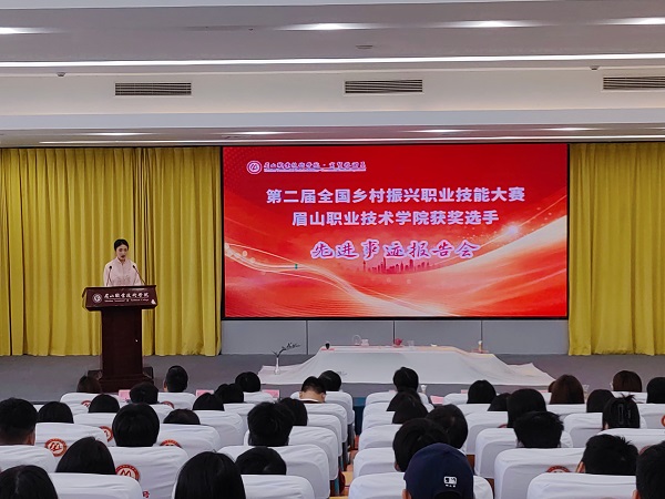 5月29日,第二届全国乡村振兴职业技能大赛眉山职业技术学院获奖选手先进事迹报告会暨总结交流座谈会在学校招生就业中心二楼报告厅举行,党委书记代贤军,党委副书记、院长刘兴勇,党委委员、副院长陈光辉,眉山市人社局职业能力建设科科长张迪,东坡区人社局党组成员、区农民工服务中心主任王霞出席会议。