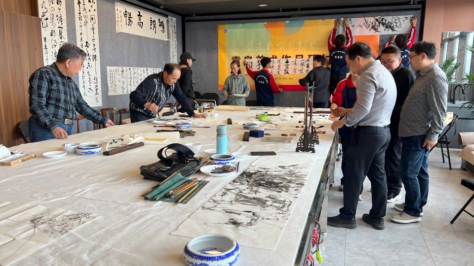 研讨会中,多位书画名家对袁泉的作品给予高度评价,就艺术经历、风格、技巧及创新等方面展开深入讨论。今天下午举行的书画名家笔会活动,各位书画名家创作热情高涨,现场氛围浓厚,作品风格多样,为师生提供了宝贵的艺术交流机会。