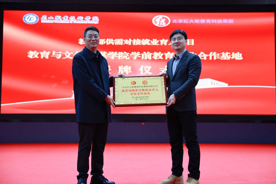 招生就业处副处长刘菲、教育与文化传媒学院副院长王其红、北京红火轮教育科技集团有限公司主任杨翠萍、项目组全体成员和 2022 级学前教育专业全体学生参与此次授牌仪式。