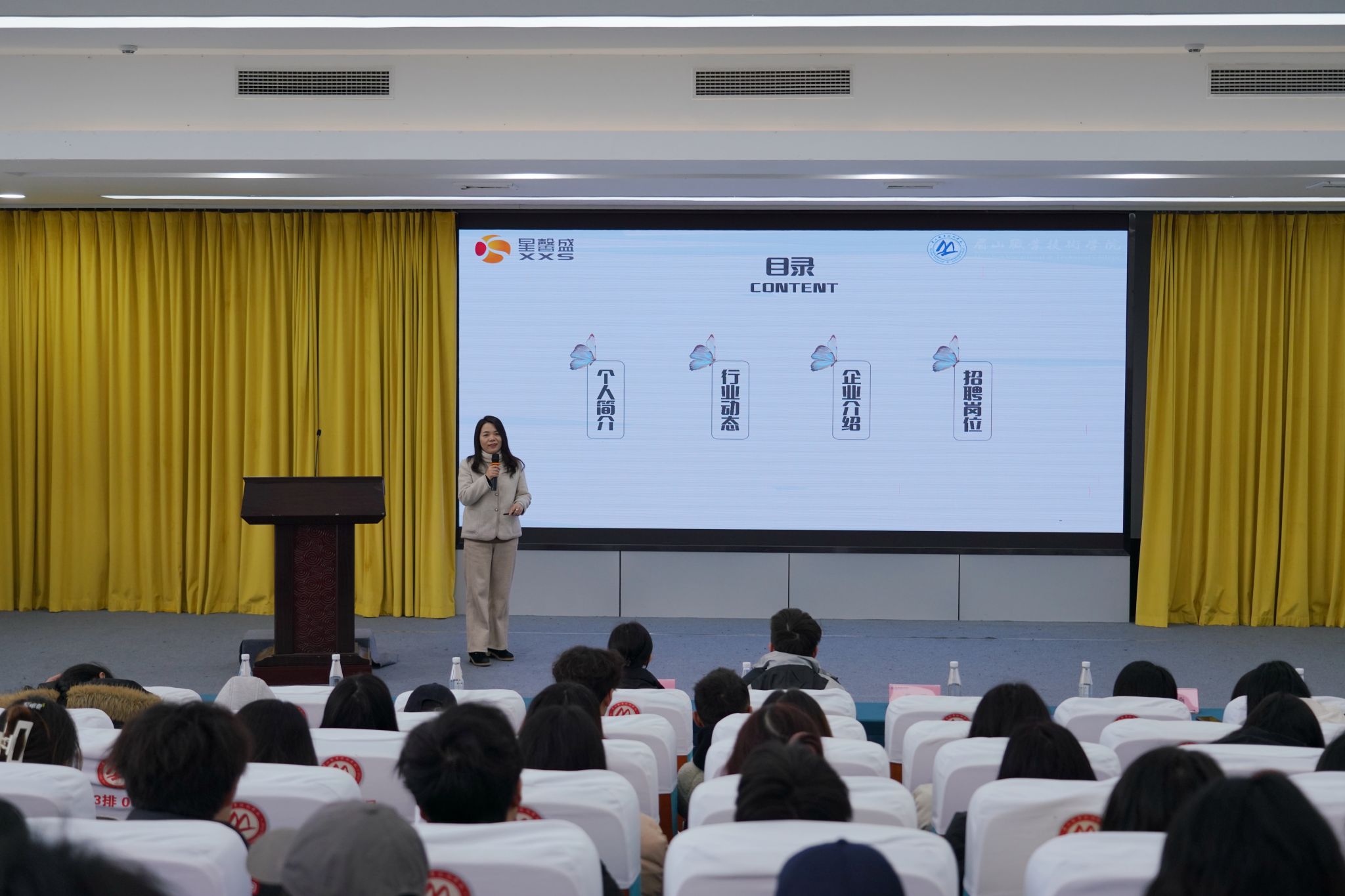 活动邀请了四川星馨盛生物科技有限责任公司研发部经理张瑞、四川省眉山市建国汽车有限公司人事部经理郭燕为学生做就业指导讲座,他们从企业发展情况、行业发展现状、企业用人标准和岗位招聘需求等方面作了详细介绍和讲解,让同学们对企业文化和企业发展有了更深入的了解,对当前企业选人用人标准和自身职涯发展路径有了更清晰的认识。