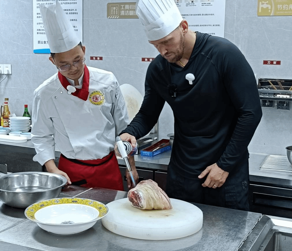 旅游与财贸学院以眉州东坡川菜学院、东坡烹饪学院及四川省吴长清(中式烹饪)技能大师工作室三大专业平台与企业联合发起“守护非遗 传承之美”公益活动。活动中,我校教师许川、陶斌鑫带领外国友人深度体验东坡美食制作技艺,以镜头记录“东坡宴”宴席设计、“东坡肘子”制作等工艺流程,传播川菜非遗技艺的独特魅力。