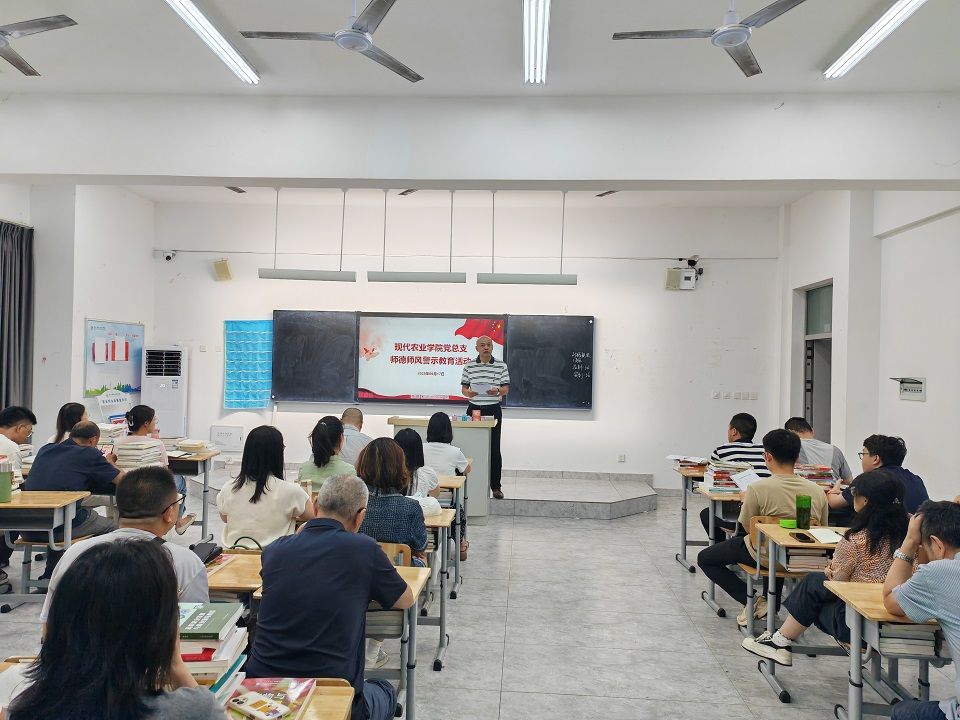 9月17日,现代农业学院在第六教学楼6208教室开展师德师风警示教育活动。