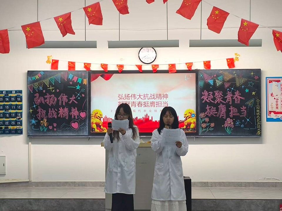 10月14日,现代农业学院在全院各班开展“弘扬伟大抗战精神,凝聚青春挺膺担当”主题团日活动。