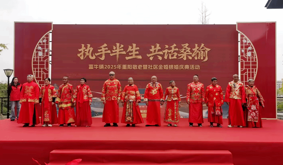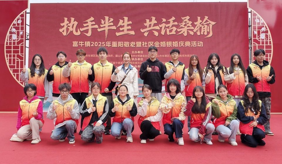 10月28日,学校团委携手富牛镇政府,在“川大里”特色街区二期广场温情启幕“执手半生 共话桑榆”重阳节敬老活动暨金婚银婚庆典。近700名社区长者欢聚一堂,在欢声笑语中共庆佳节,让尊老敬老的传统风尚在秋日暖阳中愈发浓郁。
