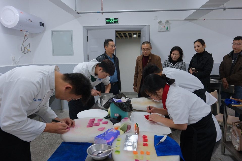 刘永刚一行还实地参观了校园环境、眉山市公共实训基地及烹饪(中式烹调)专业实训室,现场听取了旅游与财贸学院关于烹饪(中式烹调)专业师资队伍建设、实训教学等方面实践成果的介绍,现场观摩了由李源老师执教的工学一体化课堂教学,详细了解学校在实训条件建设、课程实施及专业育人方面的具体做法与成效。