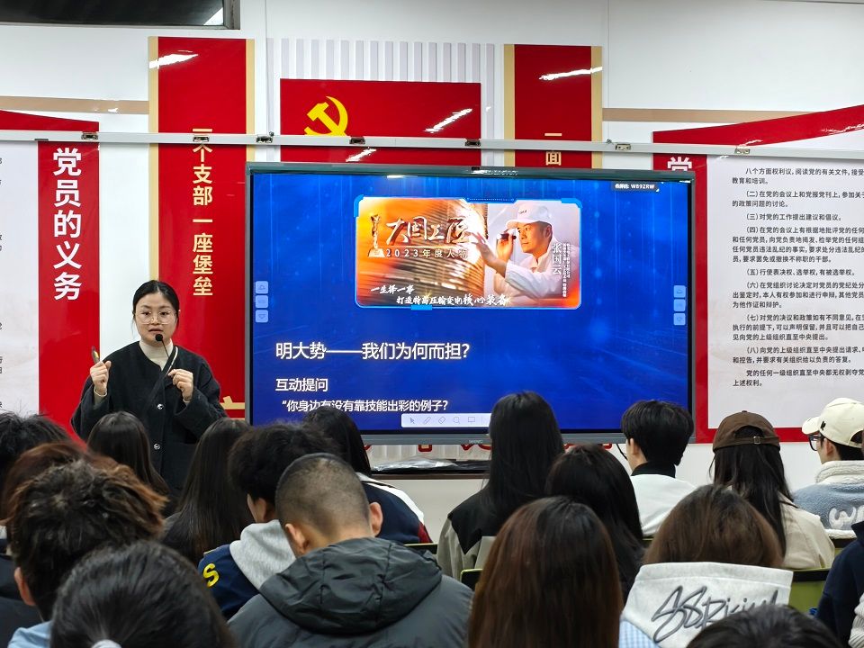 本次团课以“明大势、知己任、见行动”为主线层层展开。温丽霞紧扣新能源新材料产业发展前沿态势,结合行业政策导向与产业升级需求,深刻阐释了新时代技能人才的使命与担当。她提醒青年学子应突破“工具人”的认知局限,以技术创新为核心驱动力,成长为支撑产业高质量发展的先锋力量。