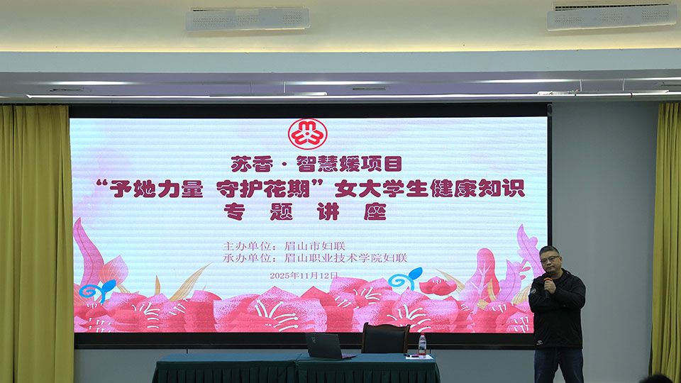 11月12日,由眉山市妇联主办、眉山职业技术学院妇联承办的女大学生健康知识专题讲座在学校招生就业中心二楼报告厅温情开讲。活动特邀四川大学华西第二医院眉山妇幼保健院乳腺外科医生刘福保,以“予她力量,守护花期”为主题,为300余名师生带来了一场兼具专业性与实用性的健康科普。