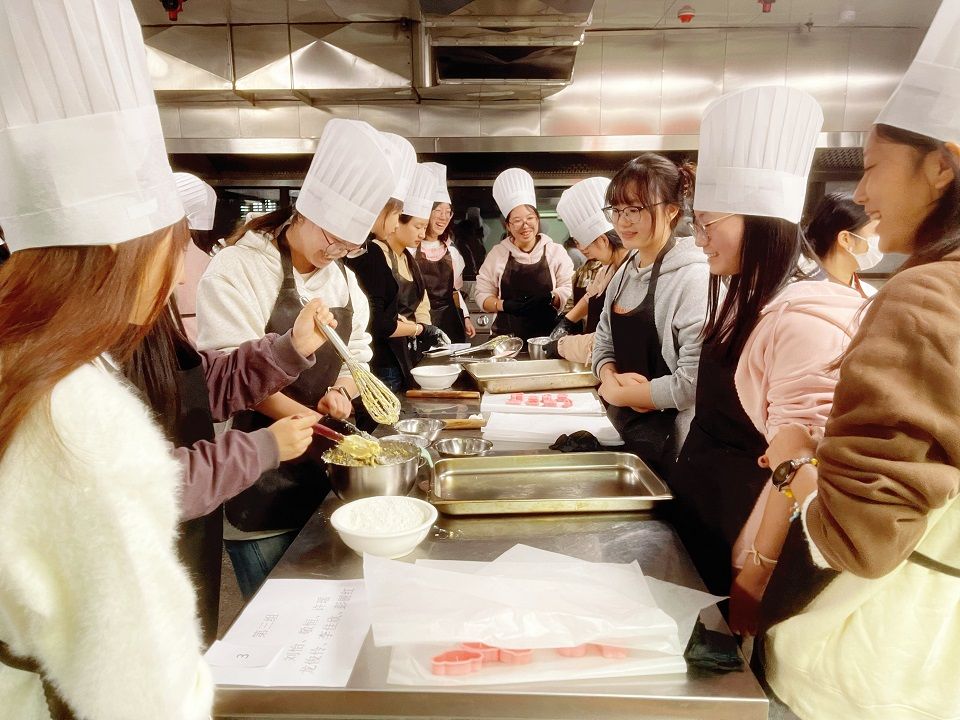 实践环节中,女大学生们分工协作、大胆创意,有的用巧克力酱勾勒“东坡”“婵娟”等文化字样,有的以蔓越莓、杏仁片点缀出“竹影”“梅枝”等意象,将对东坡诗词的理解、对传统文化的感悟融入方寸饼胚之中。原本普通的曲奇,在同学们的巧手下变成了承载文化记忆的特色作品,现场香气四溢,欢声笑语不断。