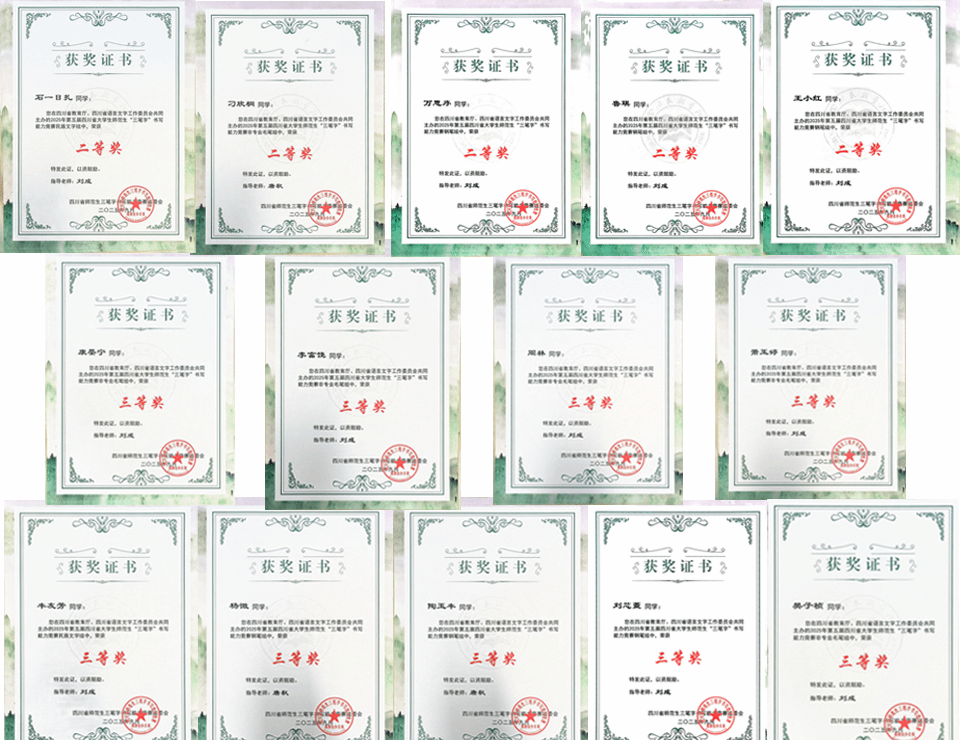 近日,由四川省教育厅、四川省语言文字工作委员会主办的2025年四川省师范生“三笔字”书写大赛圆满收官。学校教育与文化传媒学院王小红、石一日扎、鲁棋、万思序、刁欣桐等14位学子表现优异,在软笔和硬笔组比赛中分别斩获二等奖5项、三等奖9项。